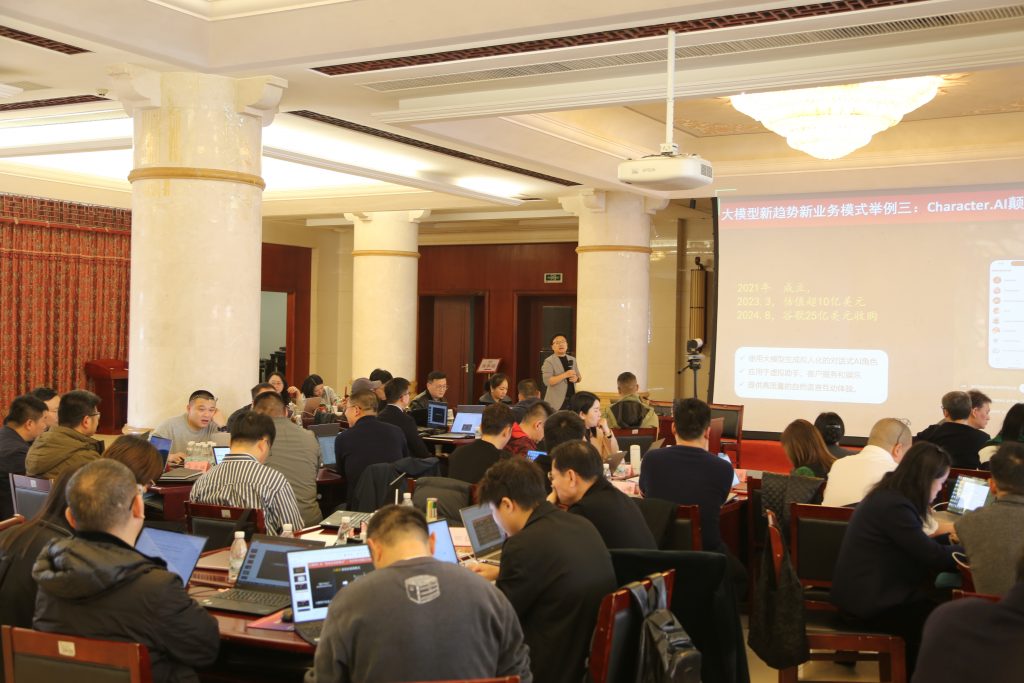 認知升維層面,鄧博士通過零售業“數據→認知→執行”三階躍遷案例,深入剖析大模型重構產業邏輯的底層規律,提出“從經驗決策到認知智能”的范式轉換方法論;技術解密層面,鄧博士系統闡釋大模型“預訓練-精調-強化學習”技術鏈條,結合醫藥行業合規性要求,詳解AI在精準營銷、供應鏈優化等場景的工程化落地路徑;實戰轉化層面,創新采用“分組研討+工作坊共創”模式,現場學員劃分為8個實戰小組,圍繞“場景運用”“提升效能”“營銷策略”等模塊,在鄧博士指導下完成多項智能解決方案設計,實現“學用一體、即訓即用”。