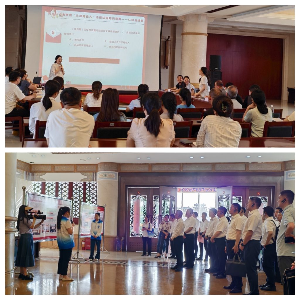 為積極回應民營企業進入新發展階段的法治新需求、新期待,5月9日,2025年江西省“法治贛商行”專項普法暨“百場公益普法基層行”進企業集中宣傳活動在樟樹市“仁和藥都里”舉行啟動儀式。此次活動由江西省司法廳、江西省工商業聯合會、江西省律師協會主辦,相關職能部門領導、企業代表參加活動。啟動儀式結束后,參加活動的領導和企業代表一同參觀了仁和863科技園,聽取了仁和關于開展藥品從業者爭做“法律明白人”相關情況的介紹,并觀看了市司法局組織的爭做“法律明白人”知識競賽——仁和選拔賽賽況。
