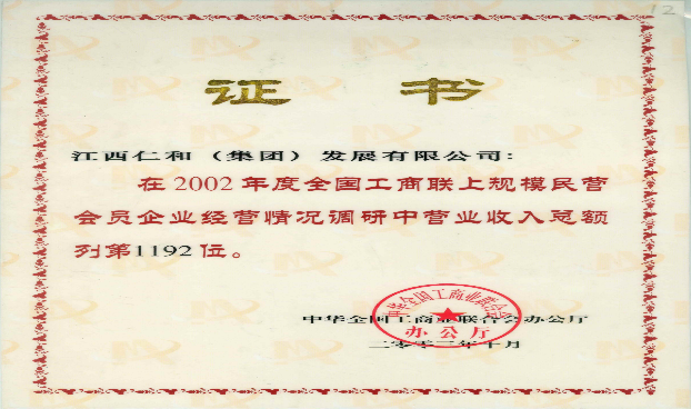 2002年度全國工商聯(lián)上規(guī)模民營會員企業(yè)經(jīng)營情況調(diào)研中營業(yè)收入總額列第1192位 發(fā)布時(shí)間: 2019年12月18日 14:37:40 閱讀量: 8,656 上一篇:2004年國家工商行政管理總局守合同重信用企業(yè)