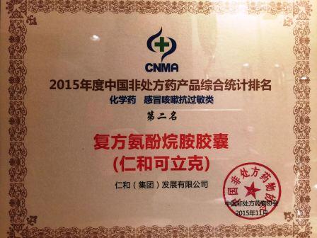 2015年度中國非處方藥產品綜合統計排名 第二名 (仁和可立克)復方氨酚烷脘膠囊 發布時間: 2019年12月18日 15:55:16 閱讀量: 9,093 下一篇:2015年度中國非處方藥產品綜合統計排名 第二名 小兒氨酚脘氨顆粒上一篇:2015年度中國非處方藥產品綜合統計排名 第一名 閃亮復方門冬維甘滴眼液